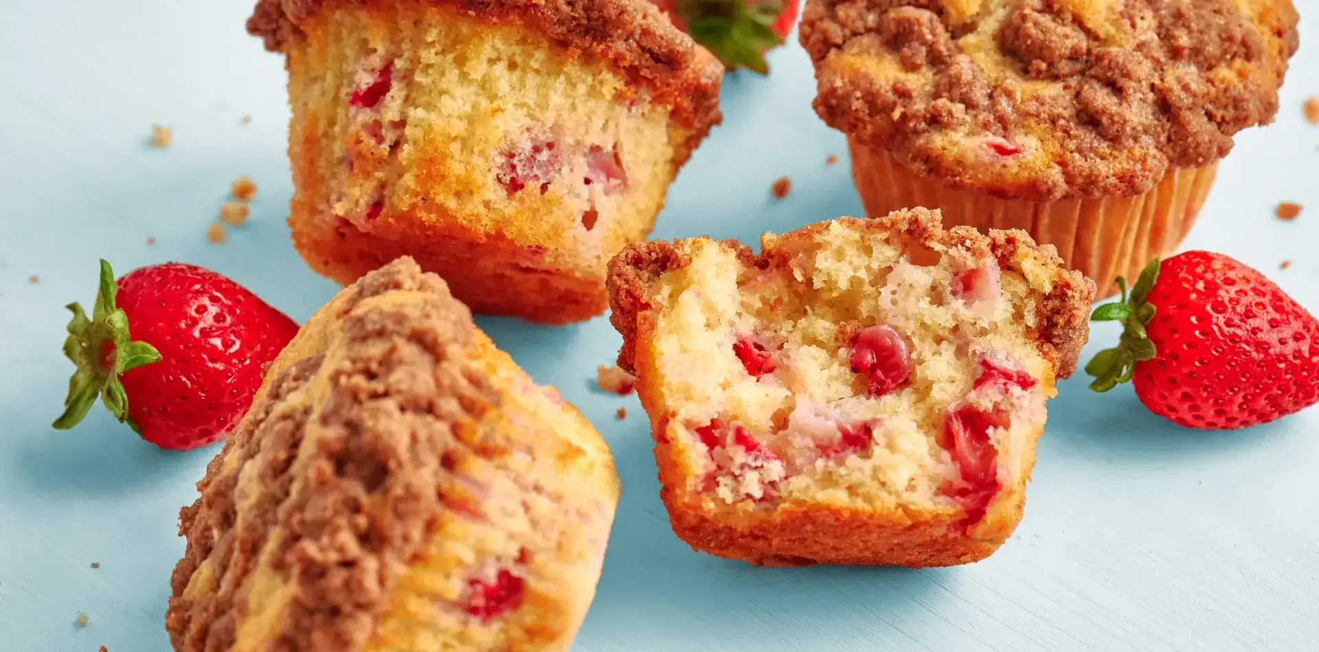 Soft, tender bakery-style muffins made with Cinnamon Swirl Coffee Cake Mix are bursting with fresh strawberries and topped with an irresistible buttery streusel.