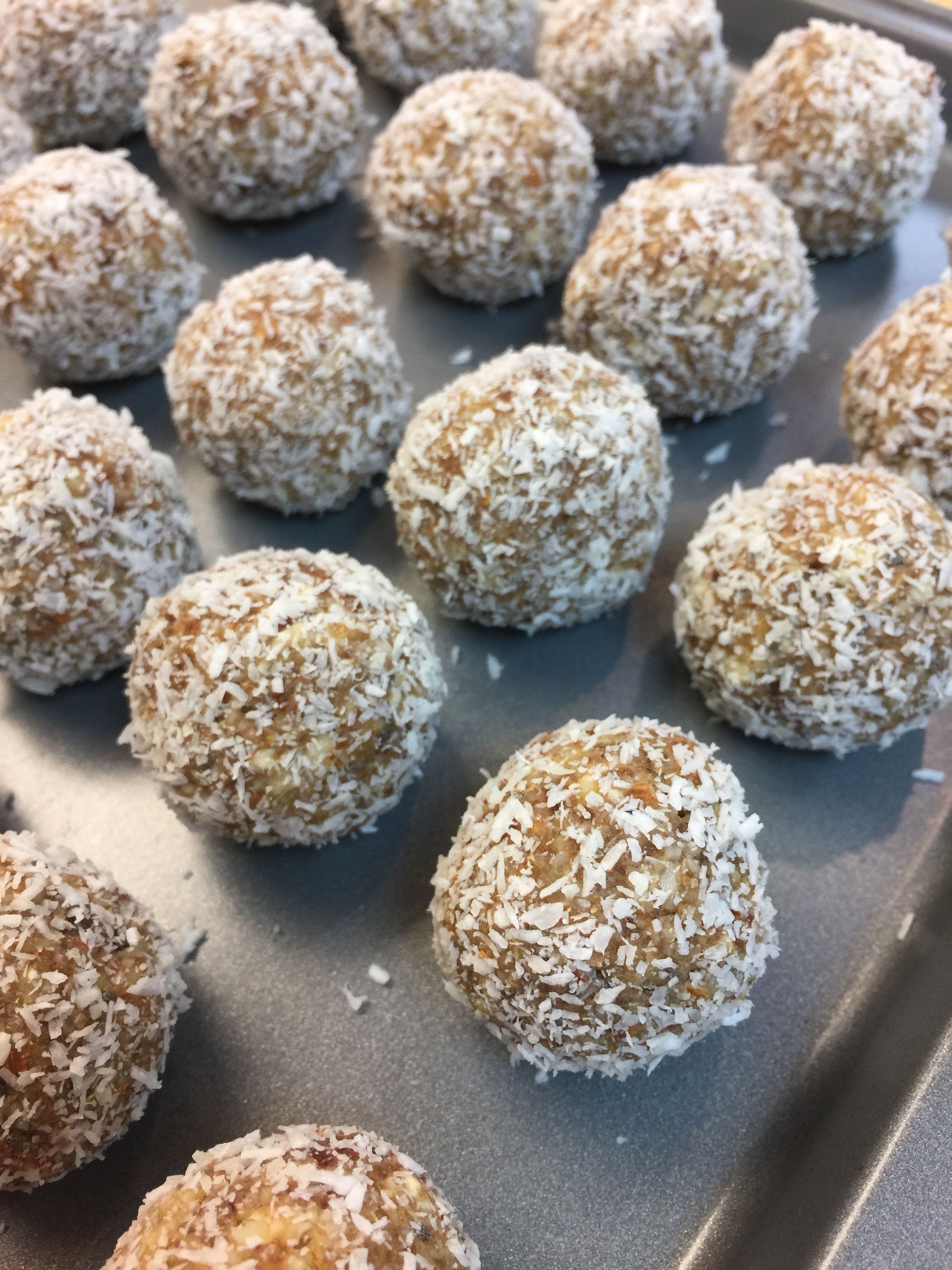 No Bake Key Lime Pie Energy Bites(below). These protein balls are something you can really sink your teeth into when you are craving a chewy snack. The fact that they only use five ingredients and can be whipped up in a flash in the bowl of a food processor make this a great recipe for new parents to make during babys nap time.