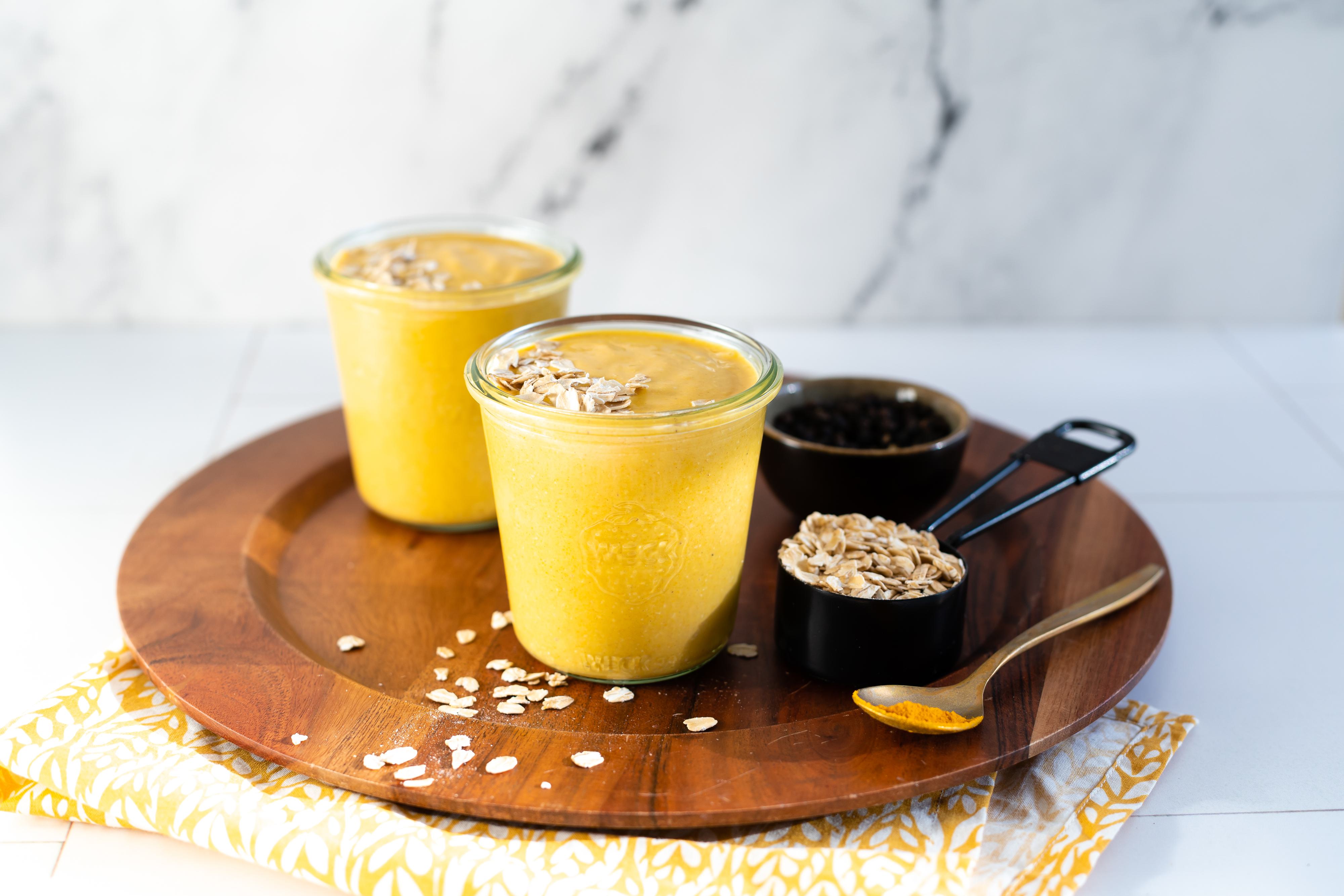 Enjoy the simplicity of a classic oatmeal cookie in smoothie form with this Oatmeal Cookie Smoothie recipe! This uses our Gluten Free Organic Old Fashioned Rolled Oats , Almond Protein Powder and Homemade Oat Milk for a nutritious, satisfying breakfast that tastes like dessert. Need a little extra sunshine? Pep up your morning with the invigorating flavors of golden milk: turmeric, cinnamon and a pinch of black pepper. Our Golden Oat Milk Smoothie also features sweet golden mango for a burst of color and flavor and our hearty, classic Gluten Free Organic Old Fashioned Rolled Oats. #ProTip: Make sure you have an insulated cup ready and clean if you're sipping on the go!