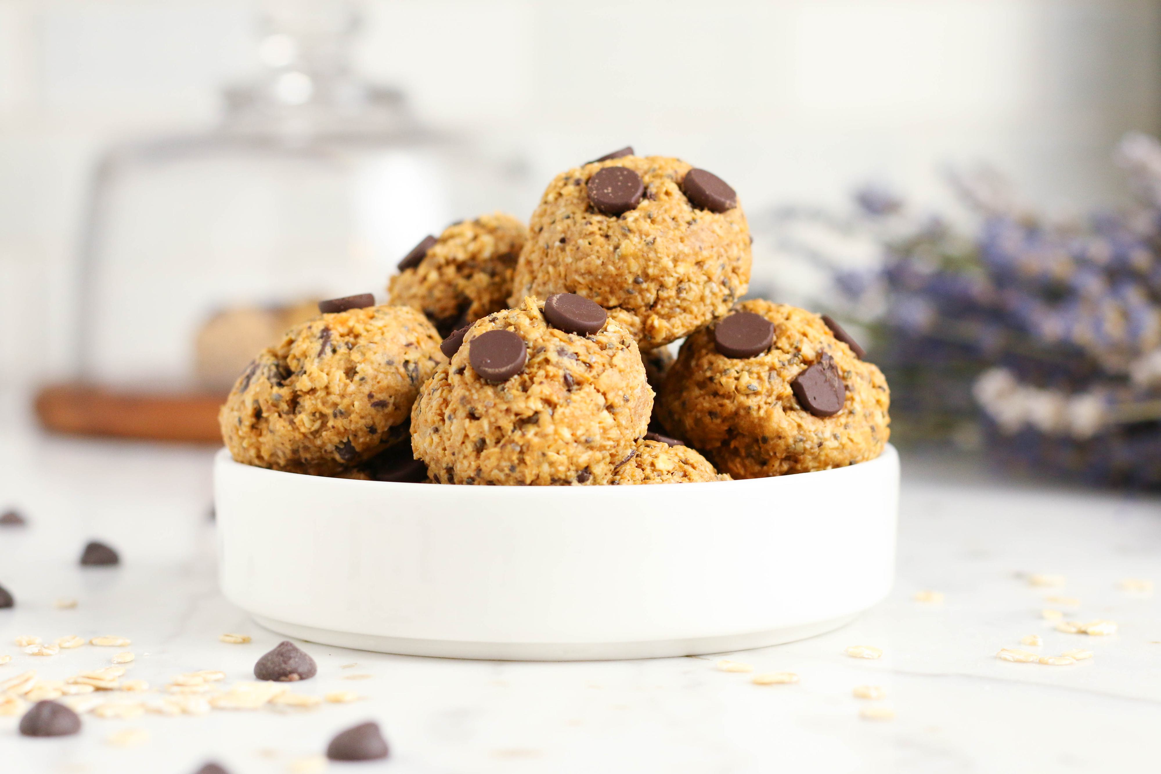 Now you can bake cookies on demand! Simply take out as many cookie balls as you need at one time, then bake according to recipe directions (Note: You can bake them right from frozen, but you may need to add a minute or two of baking time). These Healthy Breakfast Cookies are delightfully nutty, with a touch of chocolate! Organic Golden Flaxseeds, Organic Chia Seed, mashed sweet potato and creamy peanut butter create a hearty-yet-delicious on-the-go breakfast when combined with our premium quality Quick Cooking Gluten Free Rolled Oats. Vegan chocolate chips add just the right amount of sweetness.