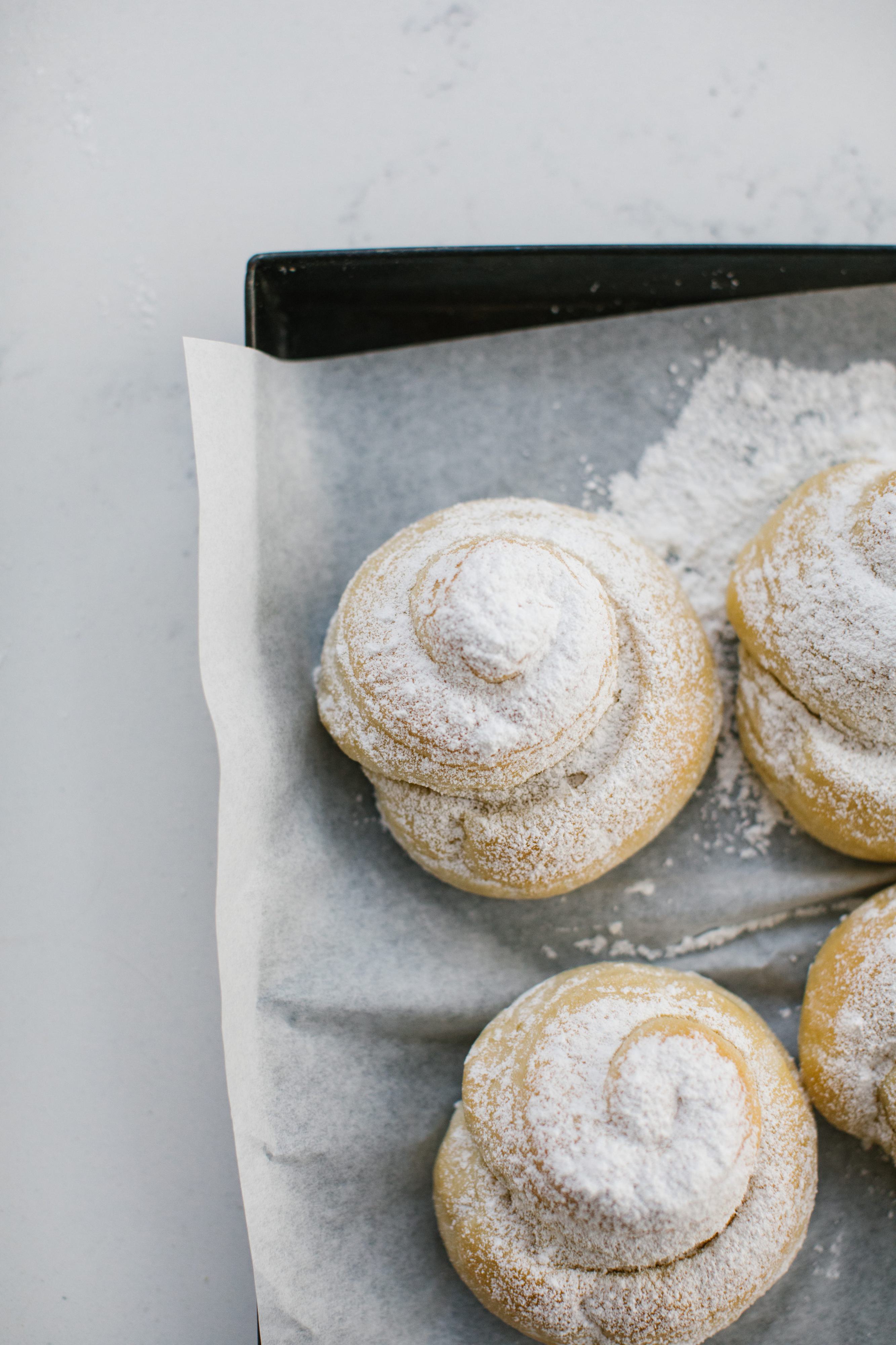 Mallorca buns are a treat from Puerto Rico by way of Majorca, Spain. The coiled shape of these sugar-dusted buns is inspired by the Majorcan ensamada, a savory pastry with pork. By the time this bun was incorporated into Puerto Rican culture, however, it had become a sweet, egg-enriched bun, suitable for breakfast or accompanying an afternoon caf con leche. They are at their very best served warm from the oven and eaten slowly. The heavenly lightness and fluffiness are made to be savored.