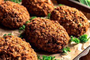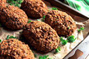 Place the lentils in 6 cups water. Bring to a boil. Reduce heat and simmer for 20 minutes or until done. Pour off the excess water. Allow to cool slightly. Place the carrot and parsley in a food processor. Process to roughly chop. Next add the oats to the processor and chop to a course texture. Place in a large bowl. Add the cooked lentils to the processor and slightly process to break up the lentils a little bit just so they help bind the mixture. Combine the lentils, salsa, garlic powder, salt and pepper to the carrot and parsley mixture; mix thoroughly. Place in the refrigerator and allow to cool completely. When ready to make, scoop out about 2/3 cup servings, form into mini loaves using wet hands to form the loaves. Place on a parchment lined baking sheet. Bake at 400 F for 30-45 minutes depending on how crispy you like them. Top if you desire with your favorite meatloaf topping.