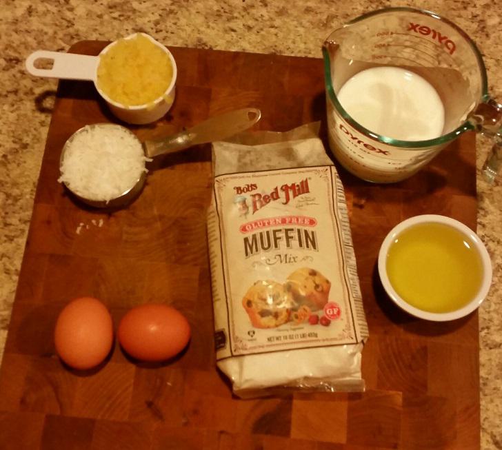 Pour muffin mix into a mixing bowl. Make a well in the center and add oil or butter, milk, and eggs. Mix until well combined. Fold in crushed pineapple and shredded coconut.