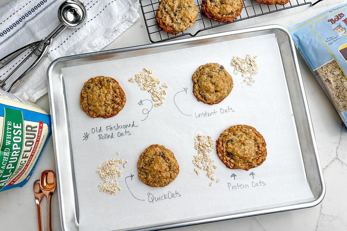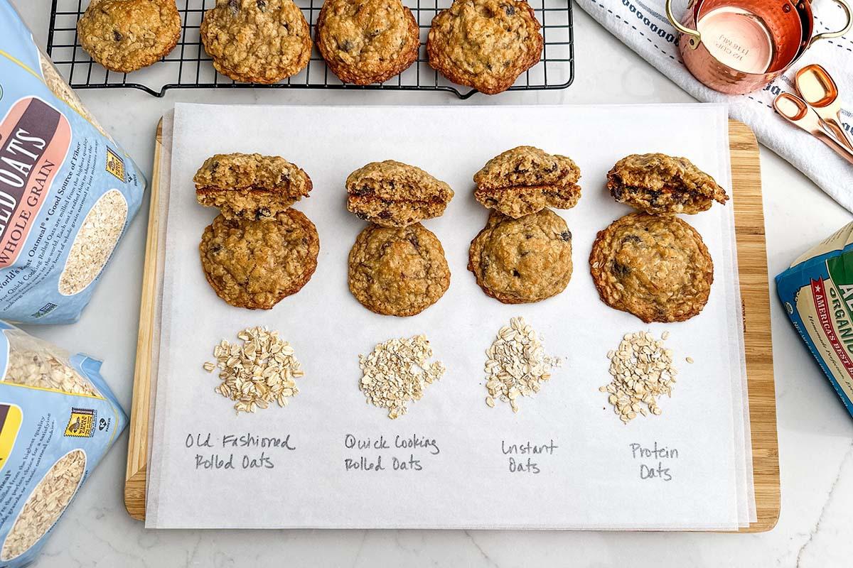 We baked oatmeal cookies with four types of oats to see how each one affected flavor, texture and spread. Spoiler: they’re all good!
