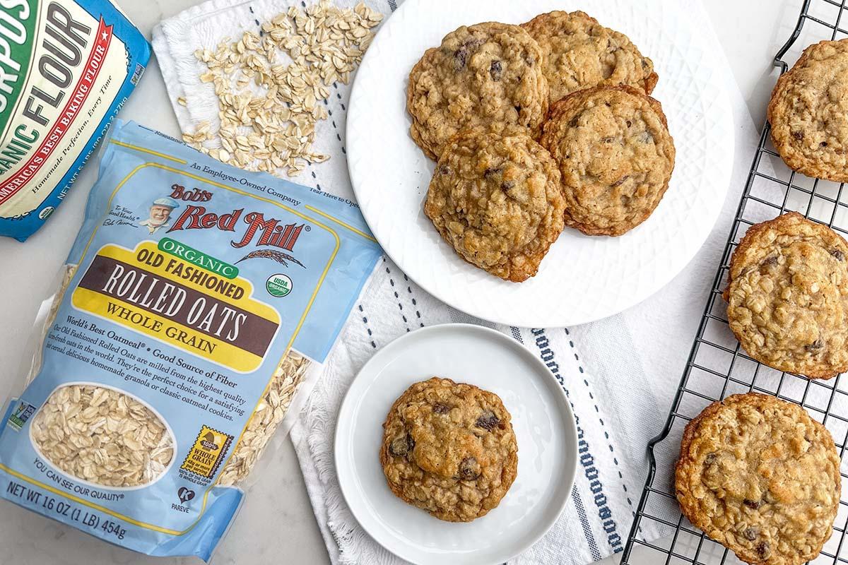 The size and thickness of the flakes affect how they absorb moisture and soften in the dough, which changes the texture of the finished cookie. Thicker oats hold their texture better when baked for a heartier, chewier cookie, while smaller, thinner oats soften more quickly and blend into the dough for a softer, fluffier cookie.
