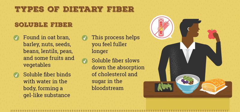 Essentially, soluble fiber works to bind with water in our system, thus becoming gel-like in consistency. It helps to make you feel full as it works to soak up the water that is passing through your system. It empties your stomach at a slower rate than other foods do, helping your body to fight off hunger and allowing you to draw energy from the meal youve just eaten.