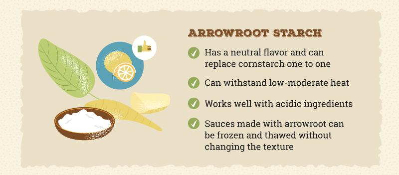 - Has a neutral flavor and can replace cornstarch one for one to thicken sauces, stews, and soups