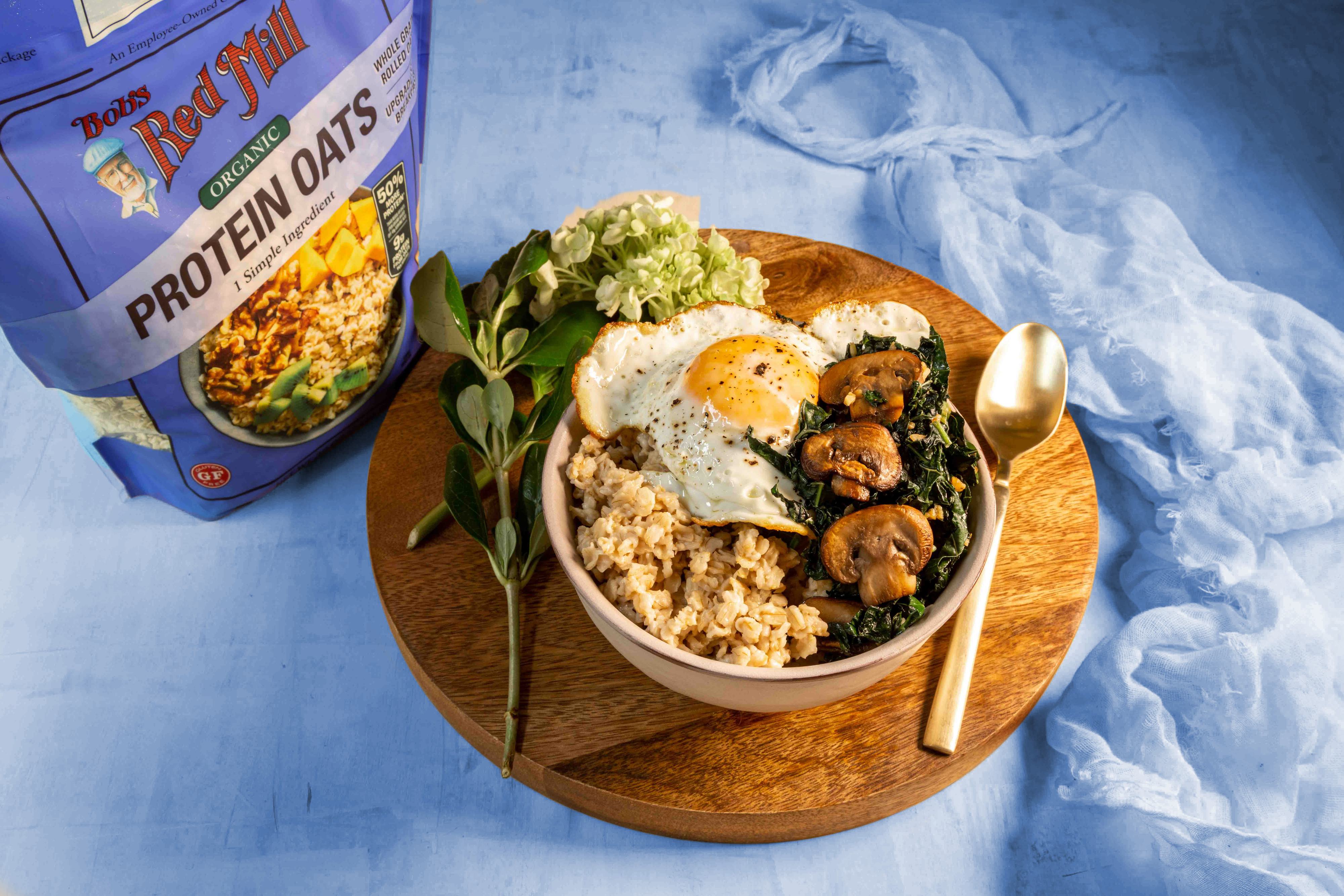 Of course, there are a lot of similarities between Protein Oats and regular oats. They're both made with one simple ingredient: whole grain oats. All of our oats are either a good or excellent source of fiber: be sure to check the packaging for full nutritional info. And both taste absolutely delicious! The main thing we love about our regular and Protein Oats is their versatility. Add your favorite toppings for the ultimate bowl of whole grain oatmeal, top them with braised greens, a fried egg and hot sauce as a savory grain bowl, whirl them into a smoothie, or bake them into cookies. The possibilities are endless!