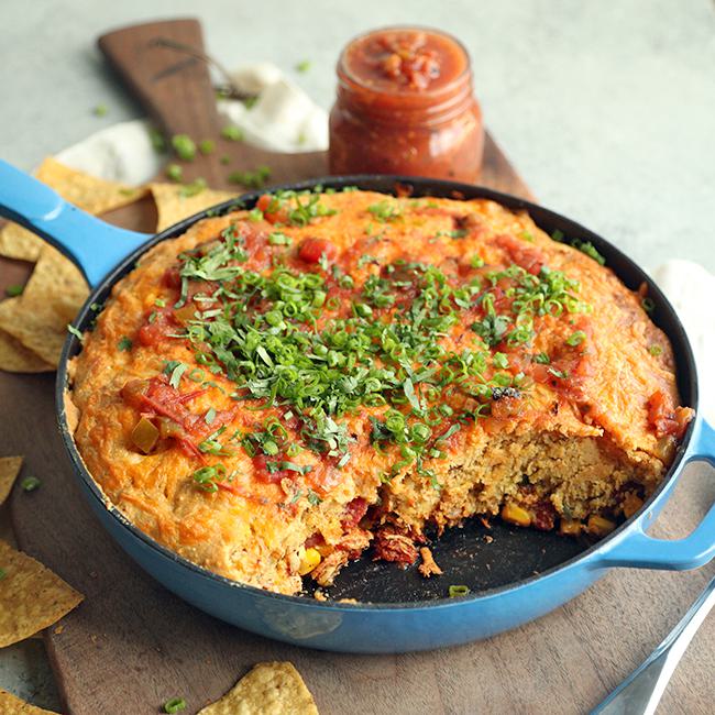 Im a huge fan of Bobs Red Mill Cornbread Mix and so is my family, so coming up with this Chicken Taco Casserole Recipe was actually pretty easy. The cornbread mix as the perfect combination of sweet and savory, making me think that the good folks over at Bobs Red Mill spent some time in the southern states to learn all their secrets. I wanted to take everything I enjoyed in tacos and bake it in a tasty cornbread crust. I used some rotisserie chicken, onions, peppers, corn and tomatoes as my base, and then seasoned it up with some chili powder, cumin, and salt and pepper. I love the fact that you dont have to stop there, you can add in things like cooked rice, pinto or black beans, or even salsa if you wanted. I wanted to make this recipe extremely approachable and malleable, should you want to swap out or add ingredients to it.