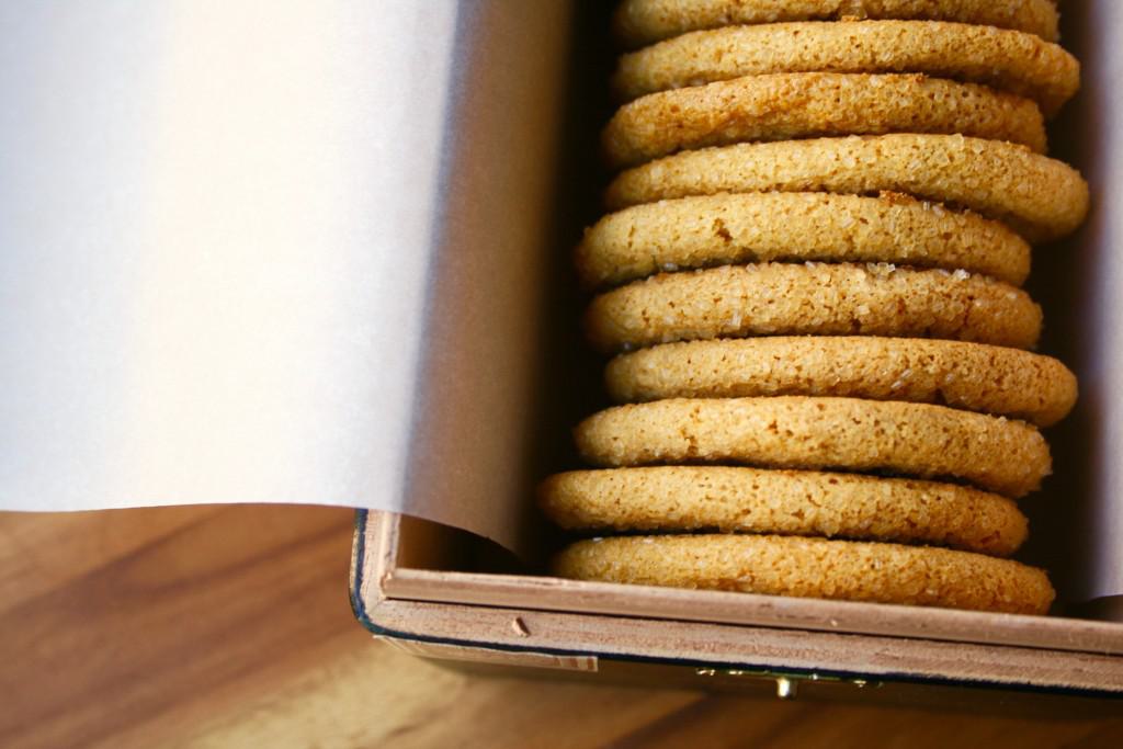 Shape 1 tablespoon of cookie dough into a ball and roll it in the turbinado sugar. Place 2 inches apart on a parchment lined cookie sheet and bake for 8 minutes. They should be nicely browned around the edges, crackly and golden. Allow to cool on the cookie sheet for 5 minutes and then transfer to a cooling rack to cool completely.
