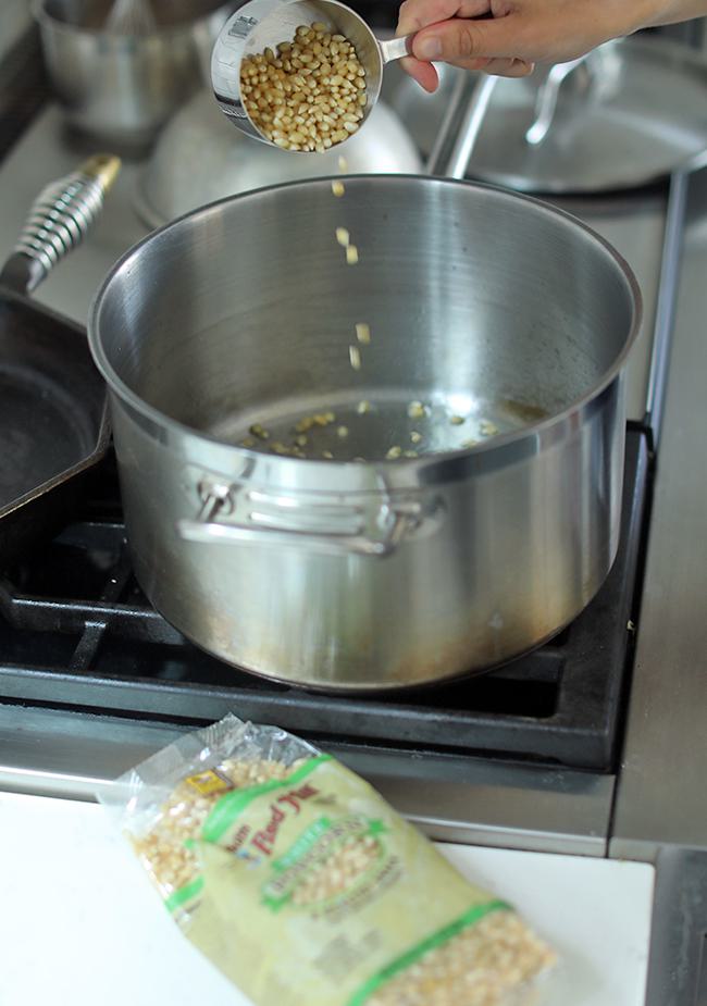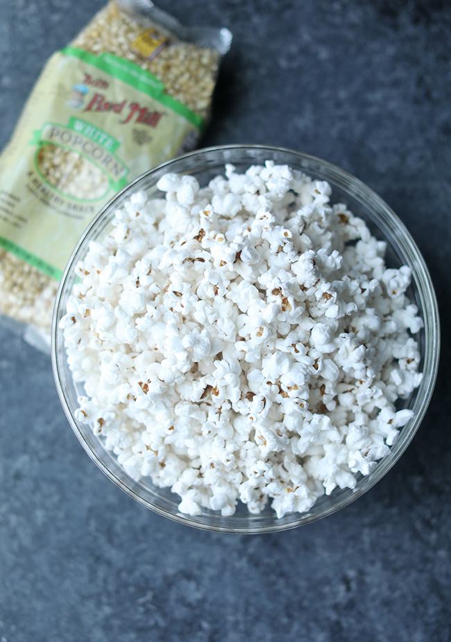 In the past I had always used a popcorn maker without thinking much of it. After looking for about 2 hours to see where my popcorn maker had gone I decided to do it the old fashioned way, on the stove. I added a bit of canola oil to a large pot with a lid (this is key), and once it began to shimmer and shine I poured in cup of Bobs Red Mill White Popcorn Kernels. The popping went crazy as I continued to shake the pot with the lid on. Honestly it was super fun to do and, wow, was it easy, I mean why did I even ever have a popcorn maker in the first place?!