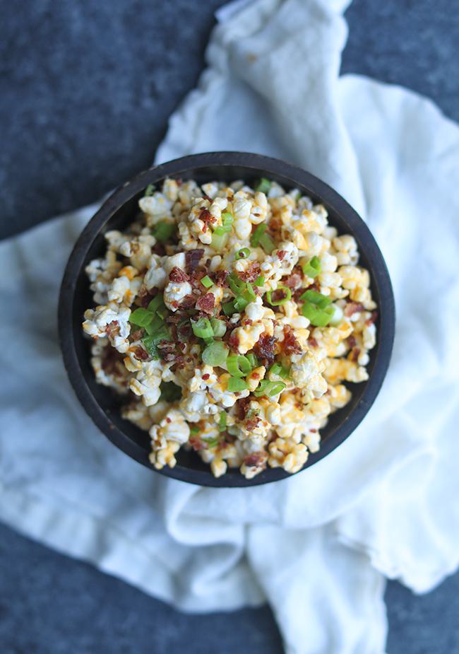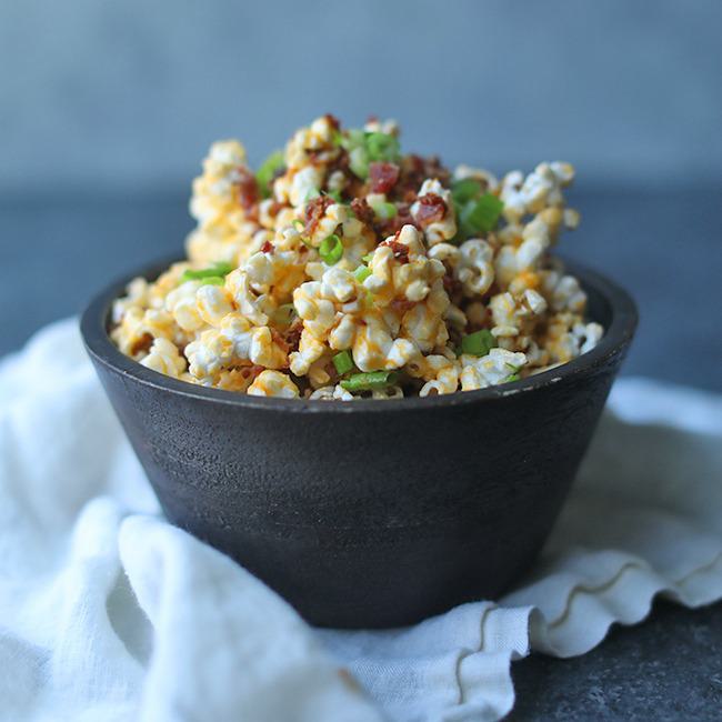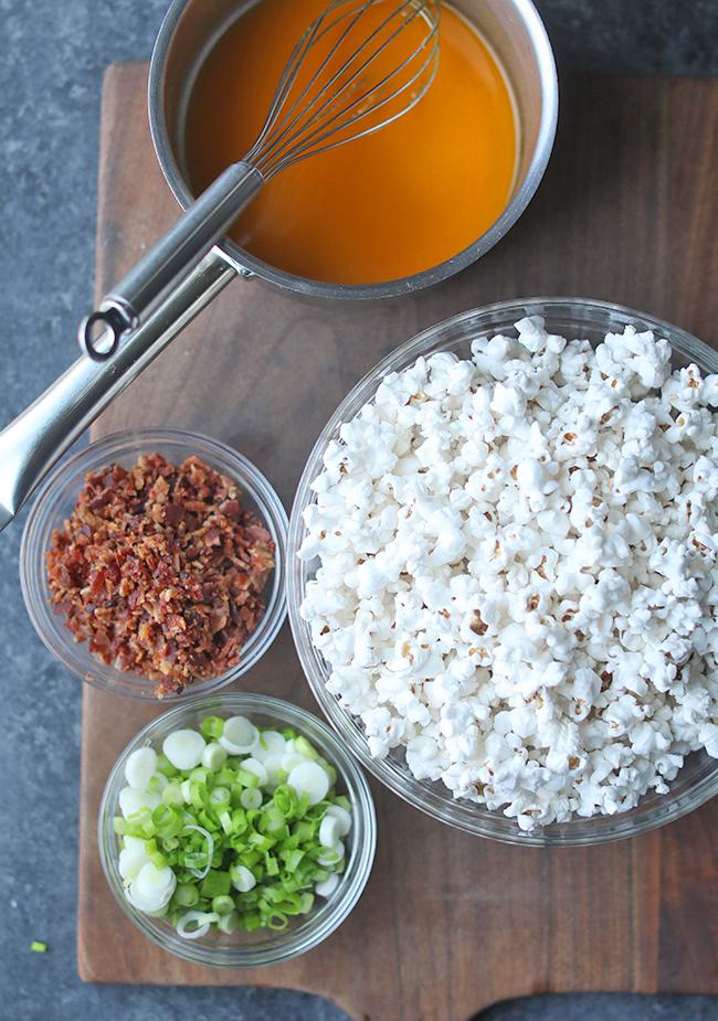 I absolutely love the combination of cheese, bacon and scallions. It doesnt matter if its on my fries, nachos, burgers or on my baked potato, the combo is killer! As I was coming up with some popcorn recipes I figured this would be an incredibly easy recipe to pull off, and I was right, it was. The first key to any flavored popcorn is obviously the popcorn itself. Bobs Red Mill makes both yellow and white corn kernels. Both pop perfectly and have an incredibly light feel to them, which makes it perfect to soak up some yummy flavors.