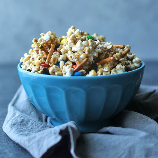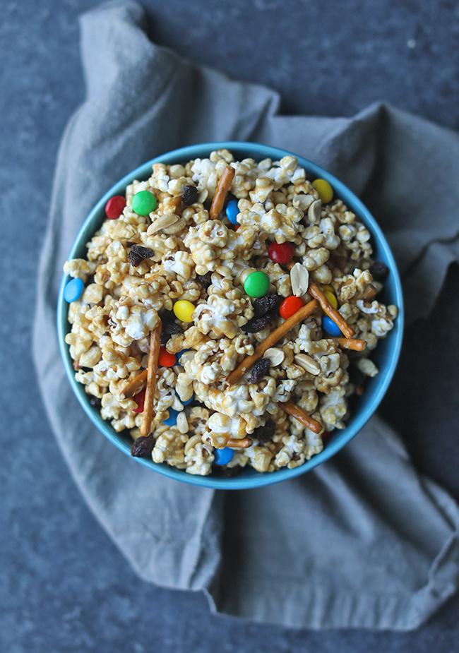 The second recipe I did was a sweet and savory trail mix sort of combo. I made some caramel corn with the already popped Bobs Red Mill White Popcorn. I then added in all of those delicious ingredients once the caramel corn was done like pretzels, raisins, peanuts and some colored candied chocolates.